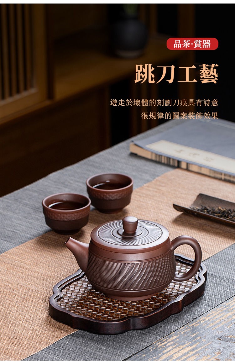 15分鐘前經典傳承・匠心打造|【大師純手工紫陶鳳鳴壺】復古跳刀紋漢瓦壺(一壺兩杯)・黃金大容量300cc + 球孔過濾,鳴音設計顯格調 - 紫陶跳刀壺【單壺】