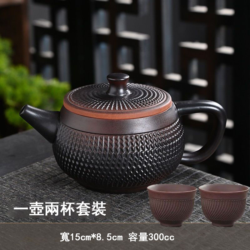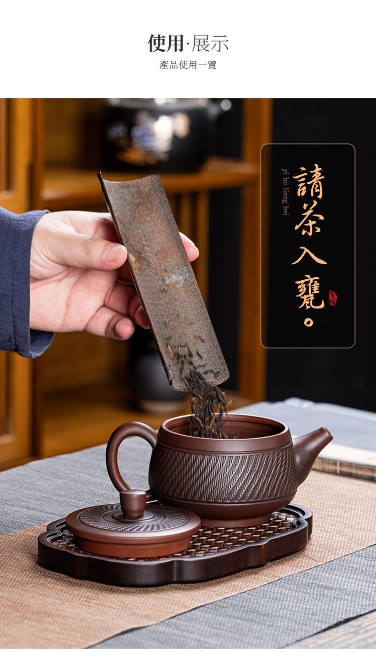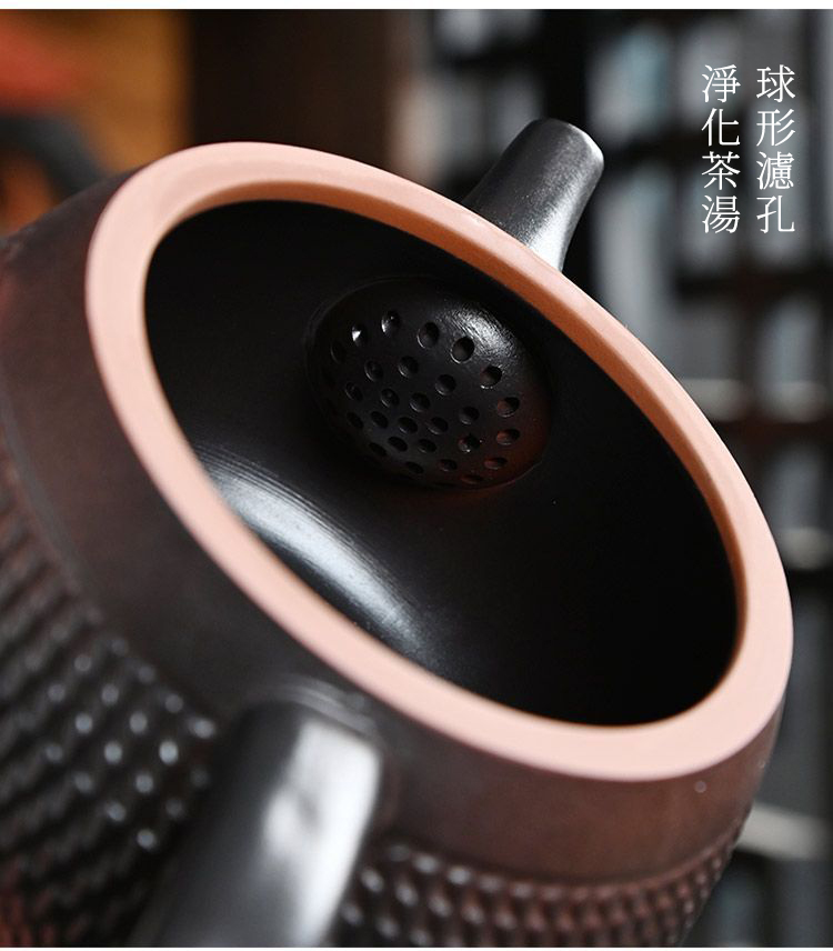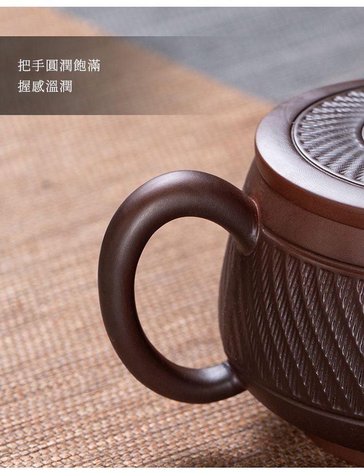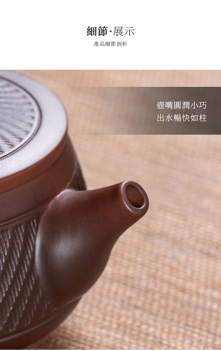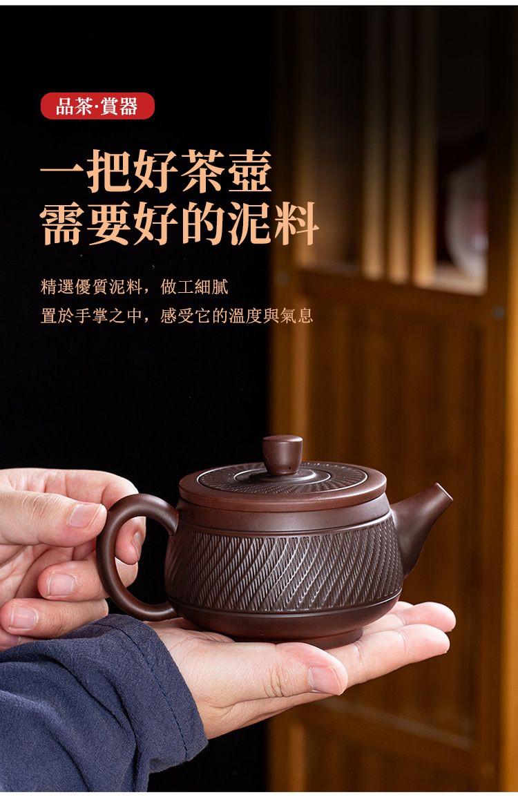 15分鐘前經典傳承・匠心打造|【大師純手工紫陶鳳鳴壺】復古跳刀紋漢瓦壺(一壺兩杯)・黃金大容量300cc + 球孔過濾,鳴音設計顯格調 - 紫陶漢瓦壺【單壺】