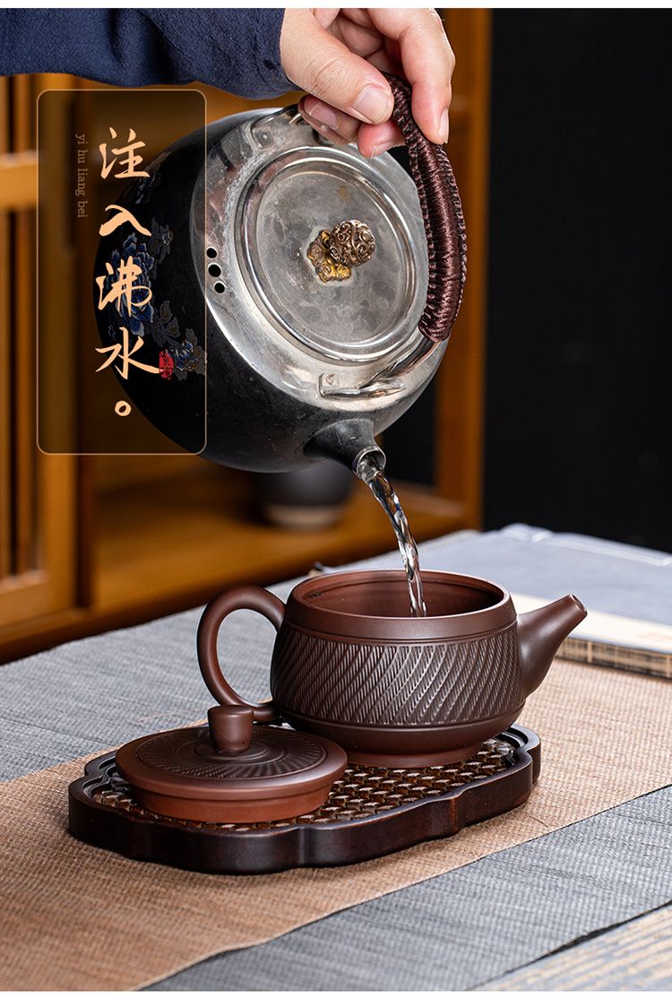 4分鐘前經典傳承・匠心打造|【大師純手工紫陶鳳鳴壺】復古跳刀紋漢瓦壺(一壺兩杯)・黃金大容量300cc + 球孔過濾,鳴音設計顯格調 - 紫陶漢瓦壺【單壺】