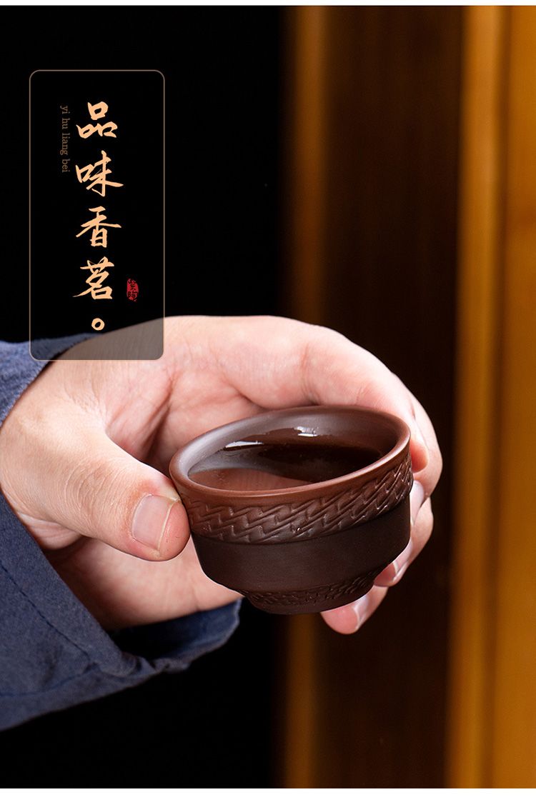15分鐘前經典傳承・匠心打造|【大師純手工紫陶鳳鳴壺】復古跳刀紋漢瓦壺(一壺兩杯)・黃金大容量300cc + 球孔過濾,鳴音設計顯格調 - 紫陶跳刀壺【一壺兩杯】