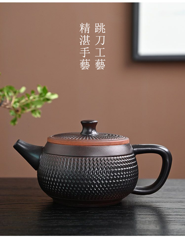 2分鐘前經典傳承・匠心打造|【大師純手工紫陶鳳鳴壺】復古跳刀紋漢瓦壺(一壺兩杯)・黃金大容量300cc + 球孔過濾,鳴音設計顯格調 - 紫陶跳刀壺【單壺】