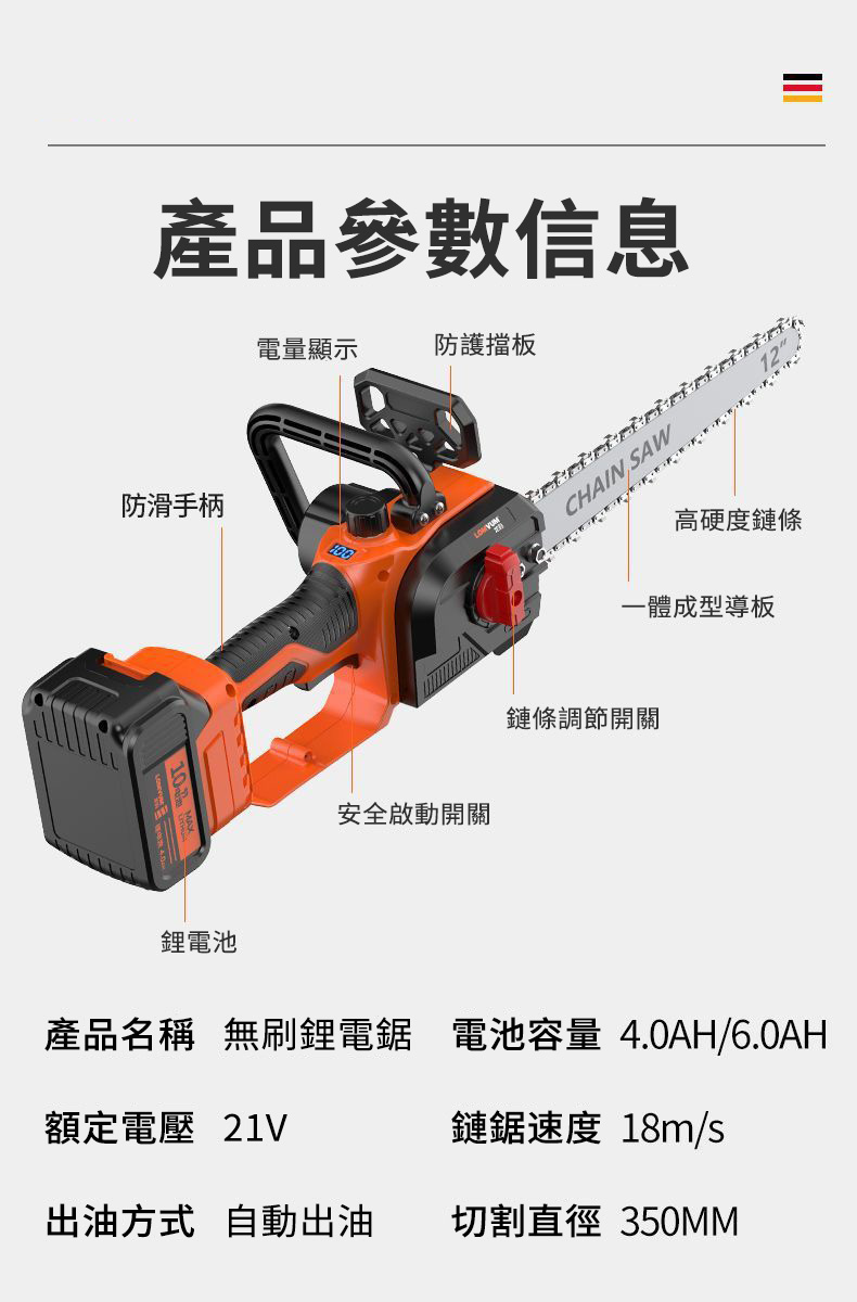 12分鐘前千元直降【東林官方 回饋國人】國民品牌 全新東林12吋鋰電伐木鋸 下訂僅需1980元!最後88組(保固一年 損壞包退換) - 12吋鋰電鋸(15節鋰電池)兩電一充
