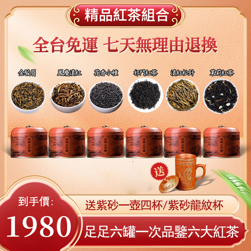 7分鐘前【蛇年到,禮真到】一次品嚐六大濃香型紅茶組合送精美[紫砂龍紋杯紫砂+紫砂一壺四杯+清明上河圖紫砂茶葉罐6個] - 六大紅茶+紫砂1壺4杯+清明上河圖紫砂茶葉罐6個---NT$1980