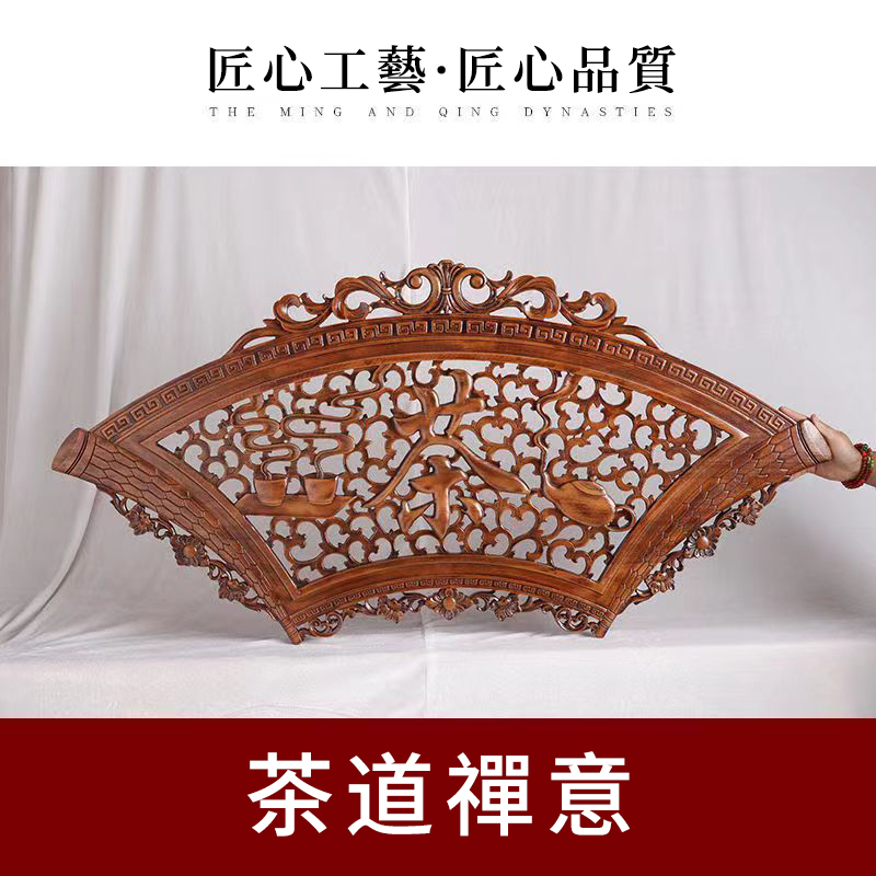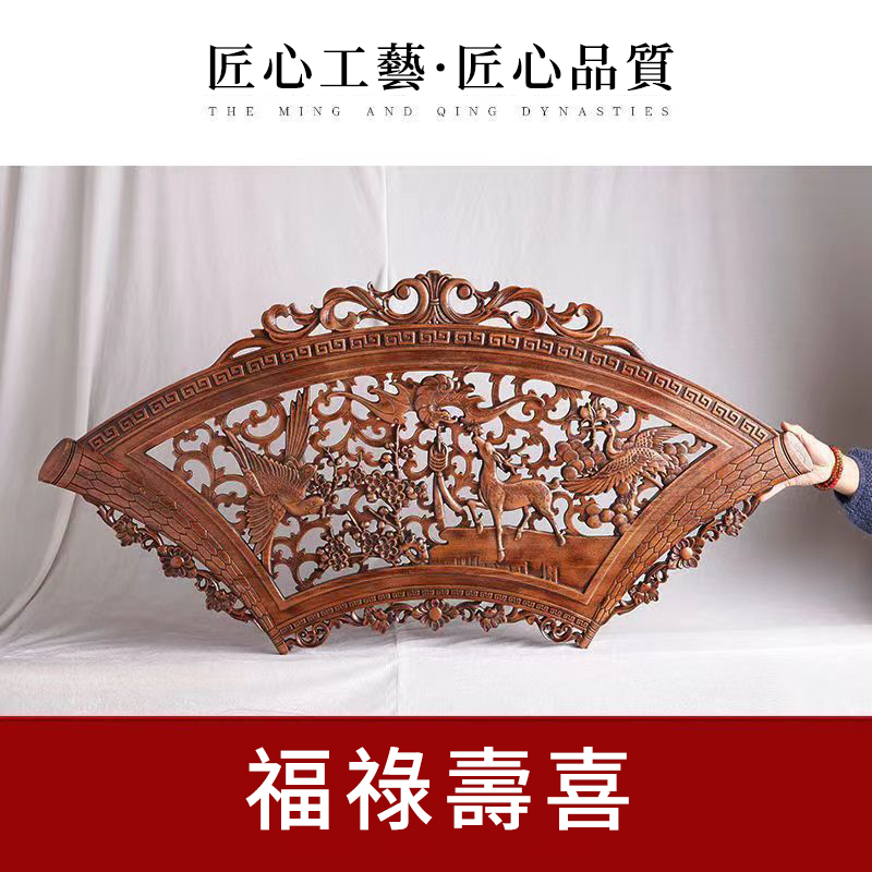5分鐘前年到!福到! [東陽木雕] 傳承千年木上巧思——天然香樟木雕刻掛件 久放升值 家中旺!蛇年順! - 典藏款-扇形80*40cm---NT$2480
