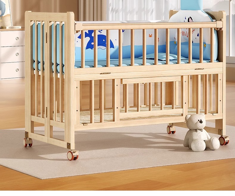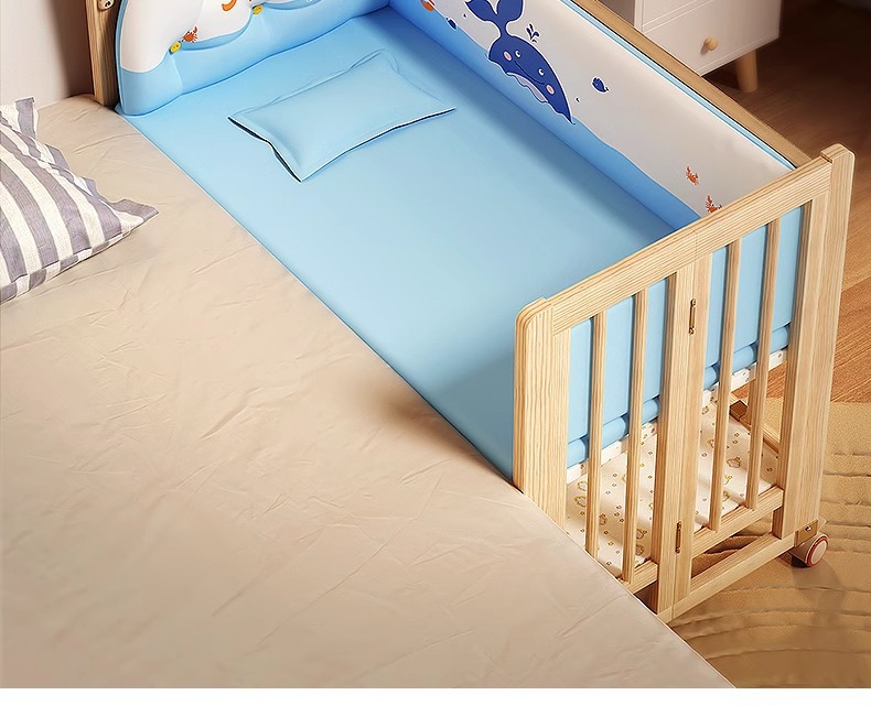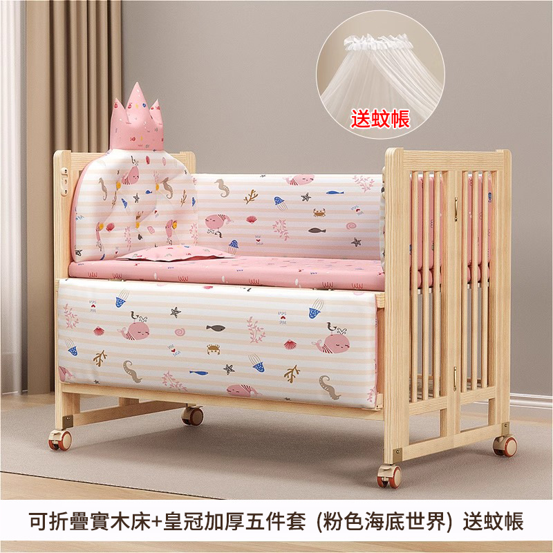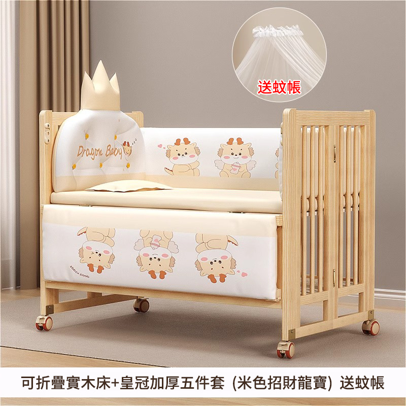 2分鐘前陪伴寶寶成長,永不閒置【嬰兒床-->遊戲床-->書桌】日本超火の可折疊嬰兒床,實木無漆更安心,可拼接大床+滑輪移動,多功能設計陪寶寶成長! - 【118*68*85cm】折疊大床+五件套+蚊帳