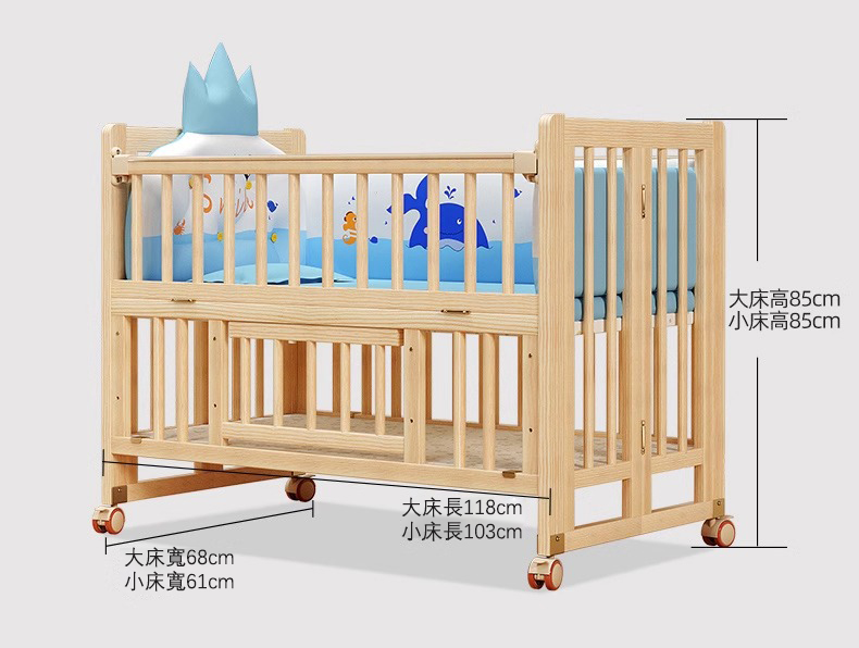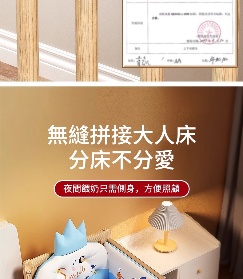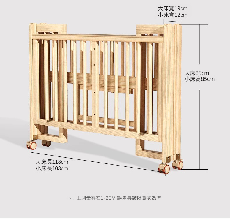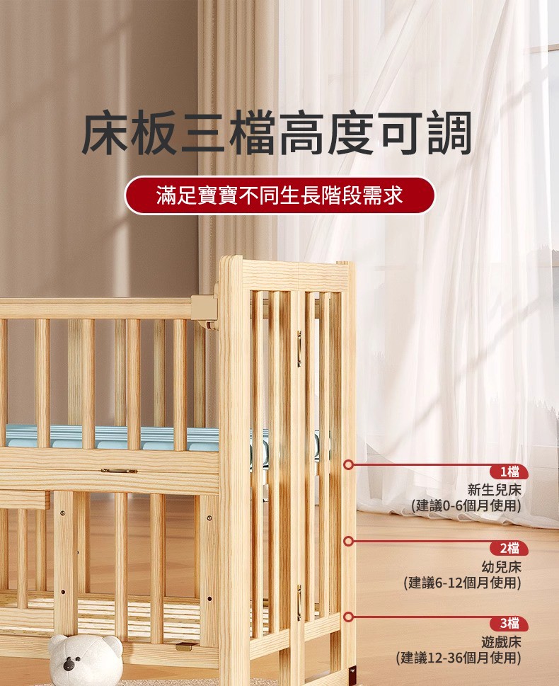 4分鐘前陪伴寶寶成長,永不閒置【嬰兒床-->遊戲床-->書桌】日本超火の可折疊嬰兒床,實木無漆更安心,可拼接大床+滑輪移動,多功能設計陪寶寶成長! - 【118*68*85cm】折疊大床+五件套+棕墊+蚊帳