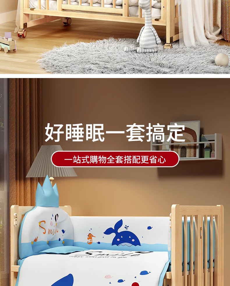 7分鐘前陪伴寶寶成長,永不閒置【嬰兒床-->遊戲床-->書桌】日本超火の可折疊嬰兒床,實木無漆更安心,可拼接大床+滑輪移動,多功能設計陪寶寶成長! - 【118*68*85cm】折疊大床+五件套+蚊帳