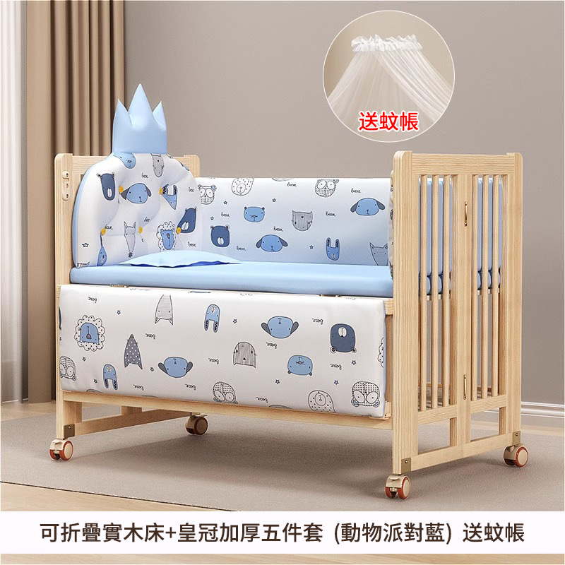 11分鐘前陪伴寶寶成長,永不閒置【嬰兒床-->遊戲床-->書桌】日本超火の可折疊嬰兒床,實木無漆更安心,可拼接大床+滑輪移動,多功能設計陪寶寶成長! - 【103*61*85cm】折疊小床+五件套+蚊帳