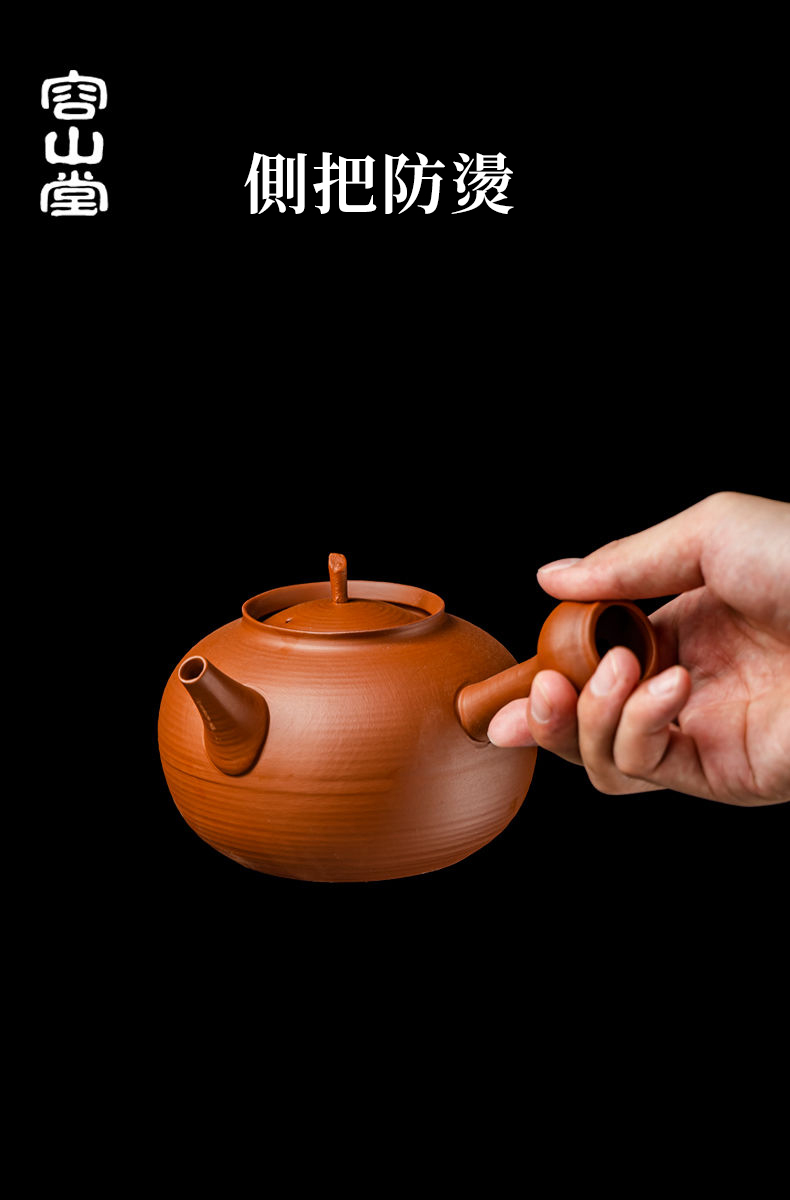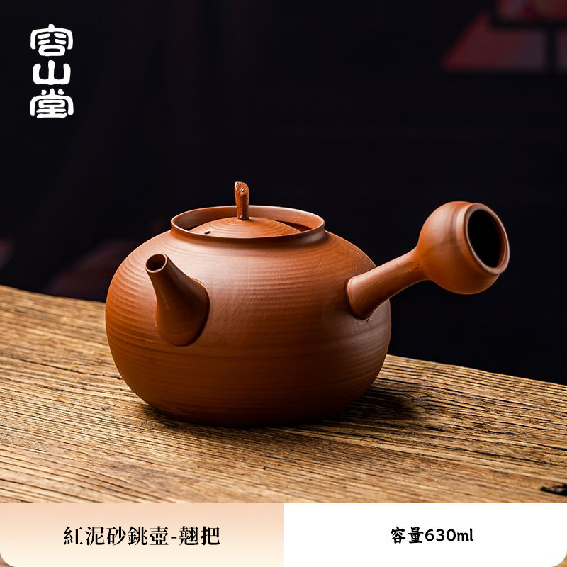半小時前2025年新中式會跳舞的原礦紅泥砂銚壺 ❘ 純手作 側把急須壺圍爐煮茶壺 - 紅泥砂銚壺-翹把