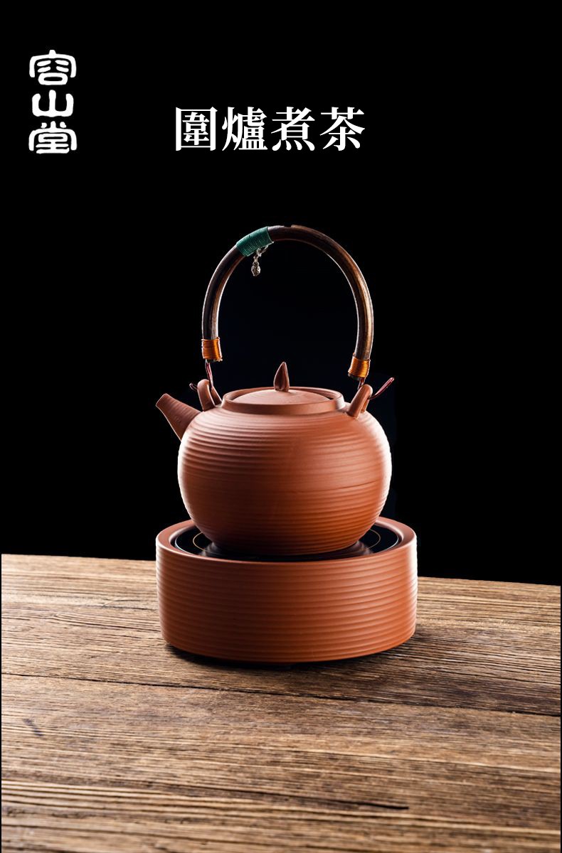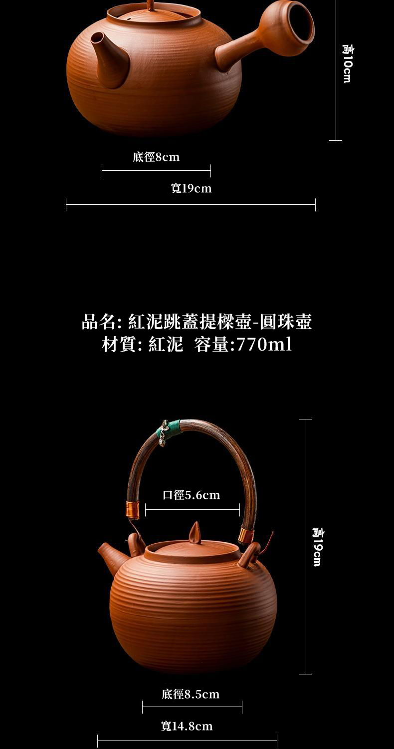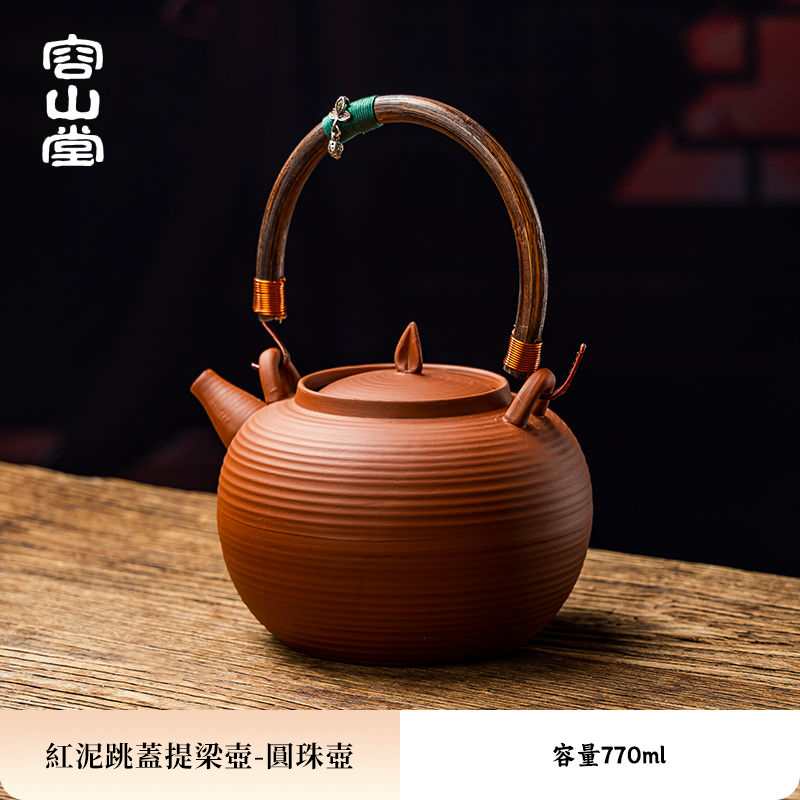 20分鐘前2025年新中式會跳舞的原礦紅泥砂銚壺 ❘ 純手作 側把急須壺圍爐煮茶壺 - 紅泥跳蓋提梁壺-圓珠壺