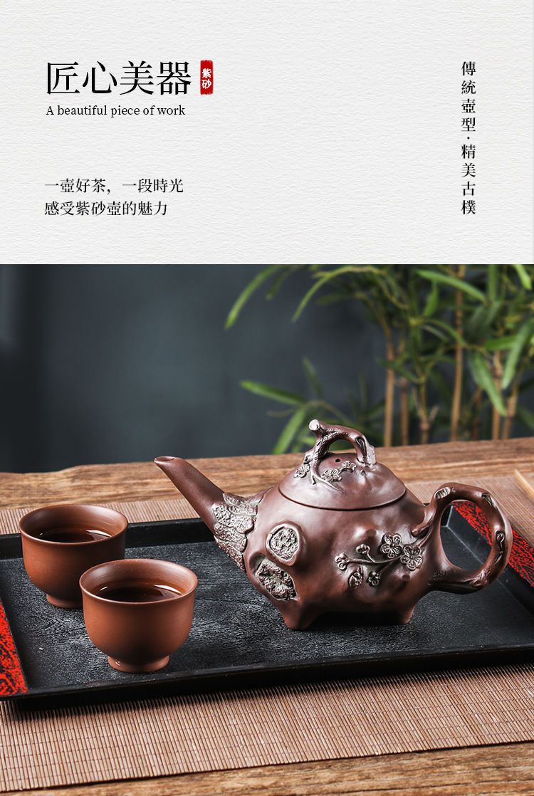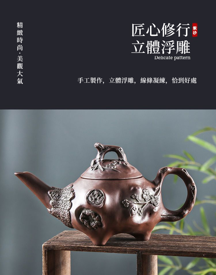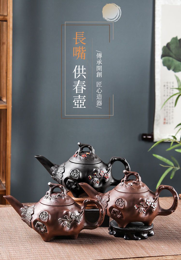 4分鐘前✩ 絕版收藏!正宗宜興紫砂朱泥長嘴供春壺 ❘ 黃金大容量500cc ❘ 純手工浮雕匠製,泡茶更香 - 紫砂朱泥長嘴供春壺500cc