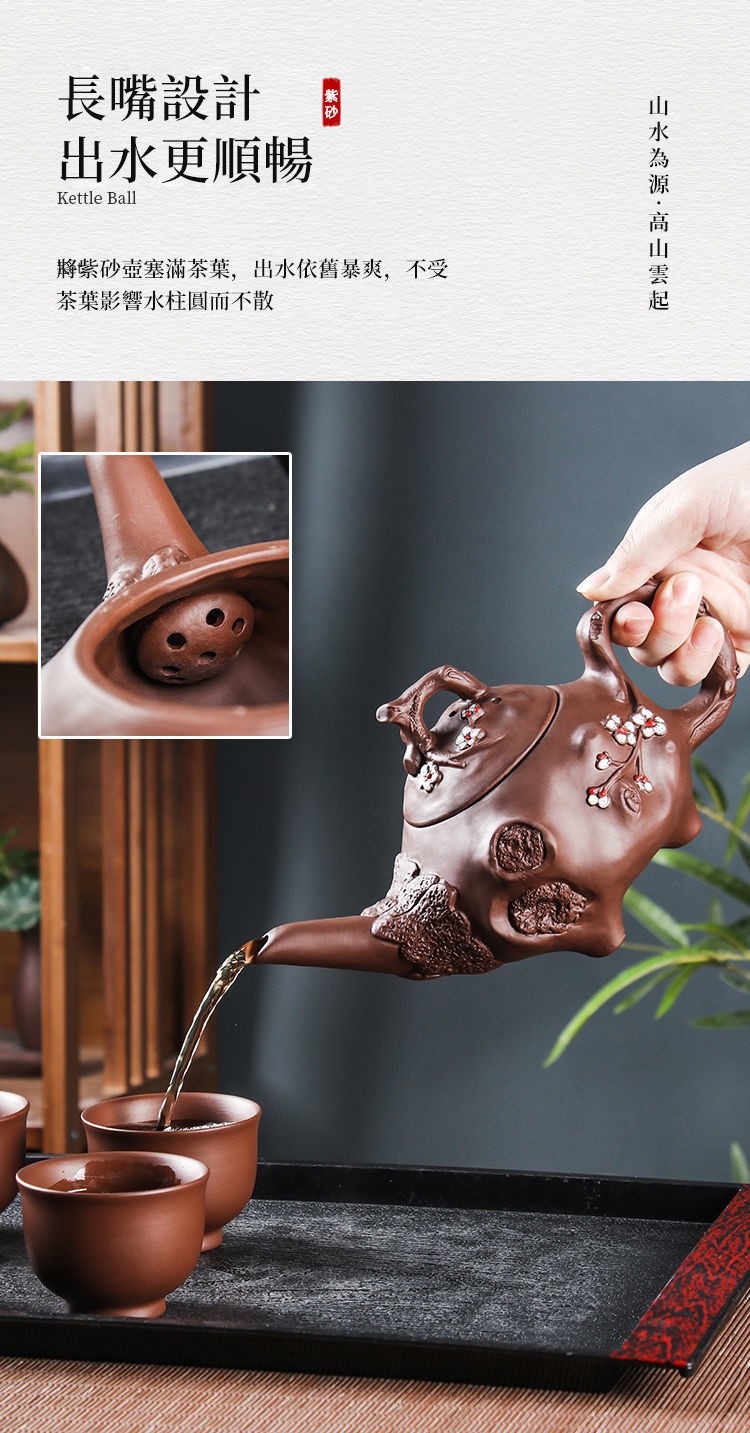 5分鐘前✩ 絕版收藏!正宗宜興紫砂朱泥長嘴供春壺 ❘ 黃金大容量500cc ❘ 純手工浮雕匠製,泡茶更香 - 紫砂朱泥長嘴供春壺500cc