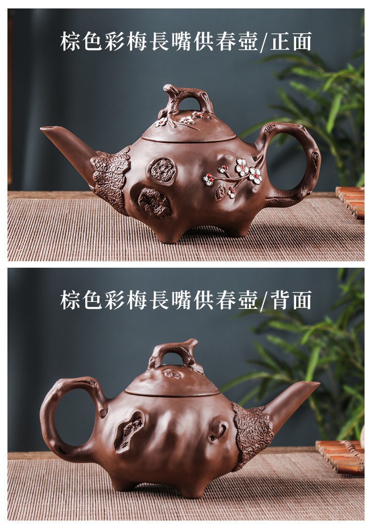 15分鐘前✩ 絕版收藏!正宗宜興紫砂朱泥長嘴供春壺 ❘ 黃金大容量500cc ❘ 純手工浮雕匠製,泡茶更香 - 紫砂朱泥長嘴供春壺500cc